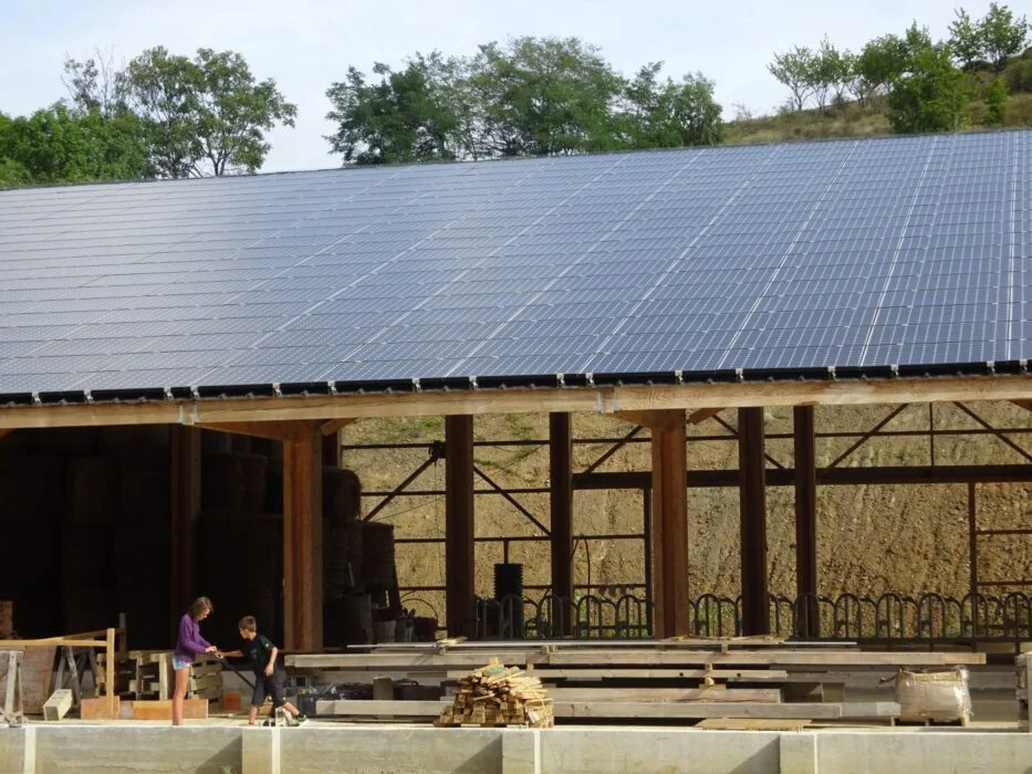 Maîtrise d’œuvre installation photovoltaïque en revente totale d’une puissance de 410 kWc. Toiture solaire sur deux bâtiments en ossature bois. Projet bénéficiant du label « Énergie partagée ».